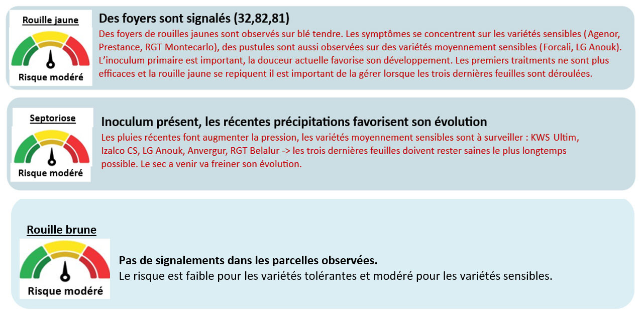 - Problème : Foyers de rouille jaune déjà traités en début de cycle mais relais nécessaire sur les dernières feuilles qui sont déployées.