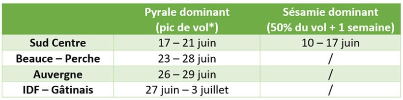 En cas de risque pyrale dominant (cas majoritaire dans nos trois régions) :