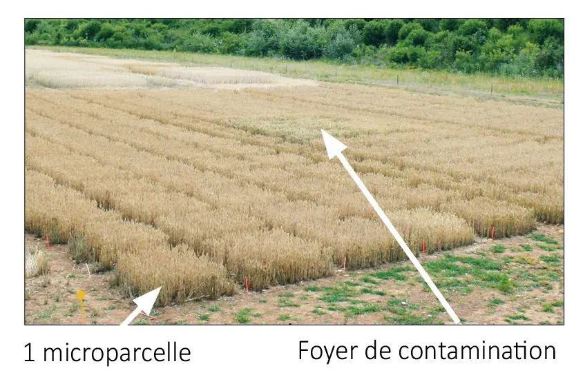 La teneur en ergot est mesurée à la récolte pour chaque microparcelle.