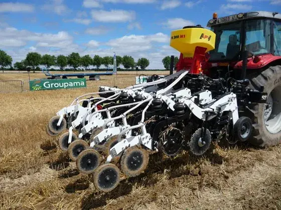 En parallèle, certains constructeurs proposent des kits de semis pour colza sur des machines non disponibles en combiné. Cela consiste à ajouter des éléments semeurs type céréale sur chaque rang et une trémie pour le dosage des graines. La précision de semis n’est certes pas équivalente à celle d’un semoir monograine mais cela permet de perdre le minimum d’humidité du lit de semences et de limiter la consommation de carburant et le temps de travail.